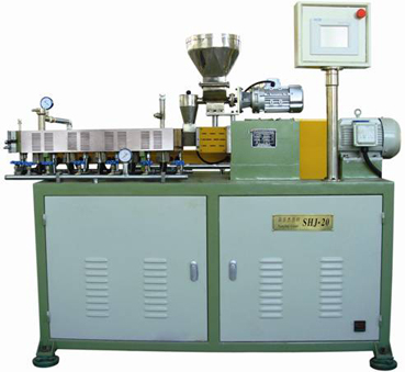 我公司研發(fā)的SHJ-20B是專門針對大專院,科研院所校設(shè)計(jì)的雙螺桿擠出機(jī),螺桿直徑20mm,設(shè)備長徑比L/D=40,生產(chǎn)能力2~10公斤,設(shè)備主機(jī)長度約二米,設(shè)備結(jié)構(gòu)緊湊,外形美觀,運(yùn)行可靠。